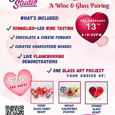 Step into a cozy evening of creativity, flavor, and connection at our Warm Hearts, Warm Glass studio event. Enjoy a guided wine tasting paired with decadent sweets and artisan cheeses while you explore the magic of glass art in a relaxed, social setting. Guests can choose from one of three hands-on projects — Fused Glass, Mosaic, or Stained Glass — each beginner-friendly and designed to spark joy. Prefer to sit back and sip? Our talented flameworker will be on-site creating custom glass pieces for your friends or partners, turning molten glass into one-of-a-kind treasures right before your eyes. It’s the perfect blend of warmth, artistry, and indulgence — ideal for couples, friends, or anyone looking to celebrate the season with something truly special.